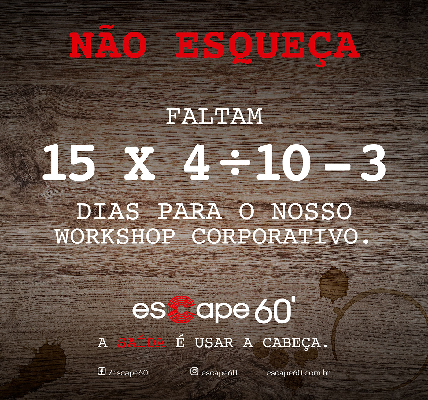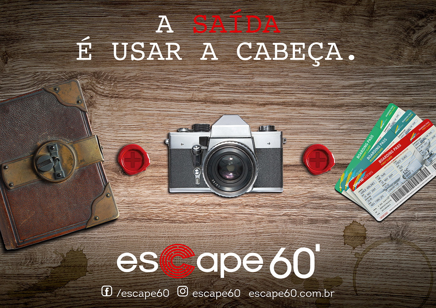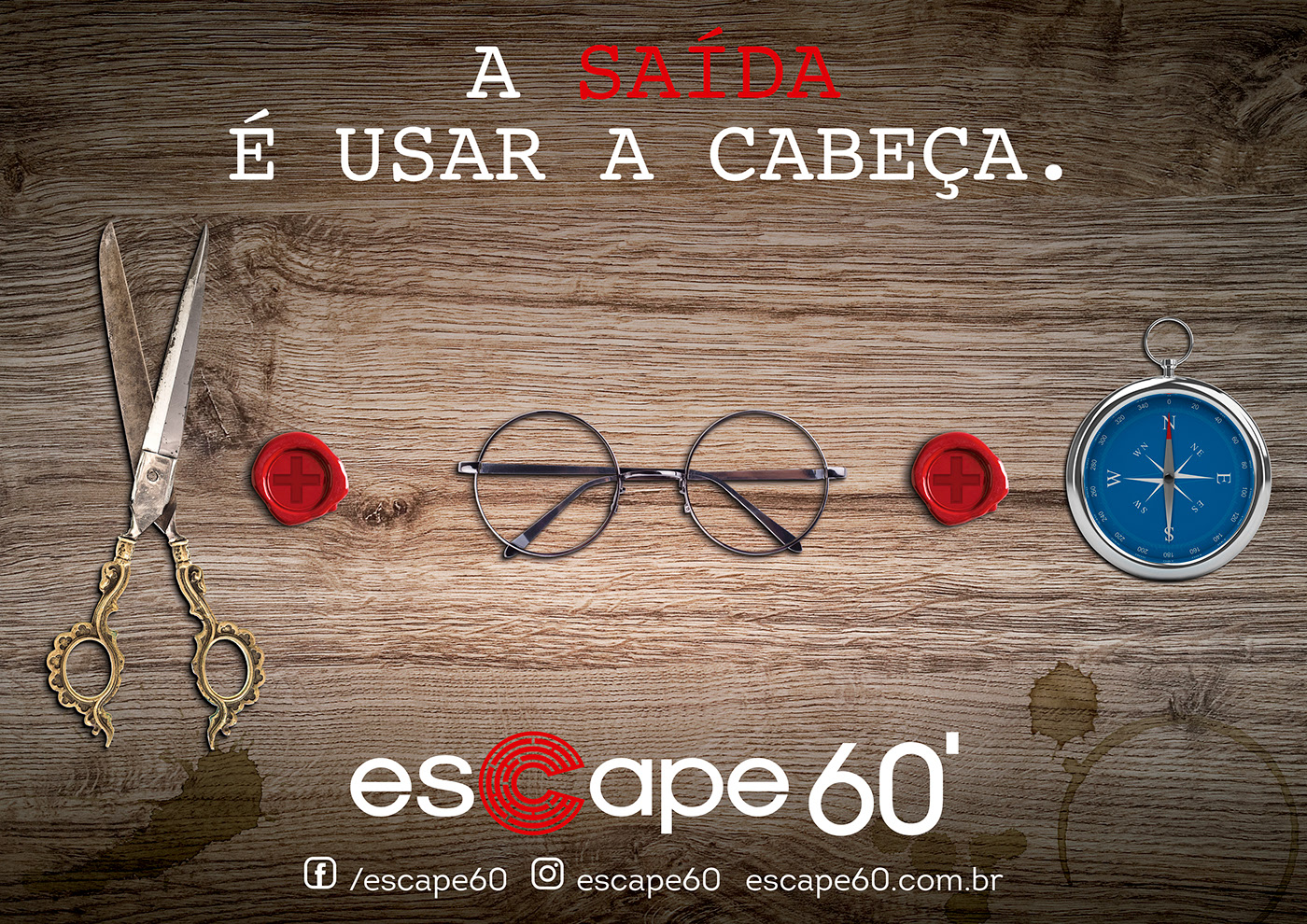 Job desenvolvido na agência Gotcha. Criação da campanha incluindo conceito visual e dos textos para o Escape 60 que é um jogo de equipe em que os participantes desvendam um enigma final através de pistas desafiadoras.